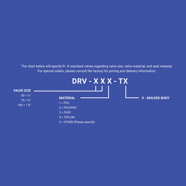 The R-K DRV (Diaphragm Relief Valve) series is designed to release any unwanted (UP-STREAM) pressure on the piping, storage tank and/or system due to the pressure surges, vaporizing, heat reaction. This valve is designed to work with low pressure only. Adjustable screw and lock-nut makes it easy and accurate preset relief pressure. Pressure range from 5 to 25 PSI Teflon (primary) and elastomer (back-up) diaphrams.